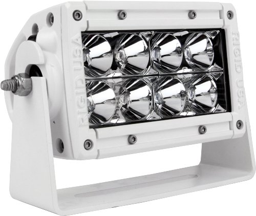 Rigid Industries M-Series 4-Inch LED Light Bar - Flood (80411)?Rigid Industries M-Series 10-Inch Light bar with combination spot/floodlight lens, 3950 Lumens, 20 LEDs. Rigid Industries LED lights are fast replacing conventional lighting in the marine industry. LED lighting is much more energy efficient than conventional marine lights, the amount of heat energy wasted is minimal, and the overall energy consumed is much less. As a result, battery powered LED lights last much longer than incandescent bulbs. Rigid Industries LED lights are significantly brighter than traditional bulbs, and impose a much smaller drain on a vessel's batteries. Marine LEDs produce relatively little heat, thereby reducing the risk of burn injuries. In addition, Marine lights do not emit UV rays, so there is no risk of damage to the vessel's paint. Another advantage of LED lighting is durability. Rigid Industries LED lights are built to withstand impact and vibration much better than conventional lighting, and have a typical lifespan of 50,000+ hours. M Series lights have a high-purity cast aluminum housing with a durable white powder coat. They have an unbreakable polycarbonate lens and GORE vents to prevent fogging. Rigid lights operate from 9 to 36-Volts, are reverse polarity protected, and have an operating temperature of -40° to +145°F. Included in package: One light fixture, mounting bracket, instruction manual. Warranty: